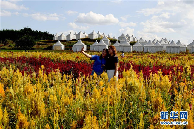 游客在云南羅平七彩花田游覽觀景(9月5日攝)。 新華社記者楊宗友攝