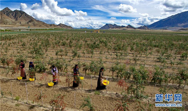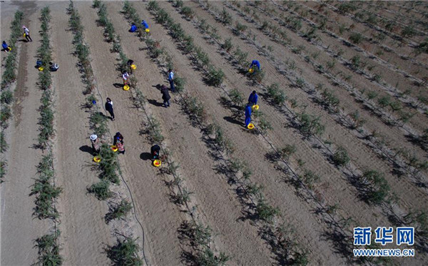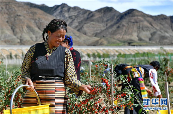 近日,西藏白朗縣萬畝枸杞生態(tài)觀光產(chǎn)業(yè)園進入采摘期。兩年多來,經(jīng)過當(dāng)?shù)卣推髽I(yè)的共同努力,將原有的沙荒地進行改造,成功栽培7000余畝枸杞目前已果實累累。 新華社記者 張汝鋒 攝