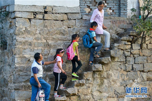 9月7日,在位于太行山東麓的河北省邯鄲市涉縣更樂鎮(zhèn)張家莊村,“80后夫妻”趙文波和秦晶晶一起護送學(xué)生回家。趙文波和秦晶晶均為師范學(xué)校畢業(yè),先后投身當(dāng)?shù)剞r(nóng)村教育事業(yè)。2000年兩人相識,共同的教育理想讓他們走到了一起。18年來,兩人相愛相守,扎根山區(qū),在三尺講臺上共同堅守。新華社記者 王曉 攝