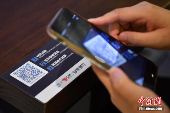 9月5日,顧客通過掃描店家二維碼實現(xiàn)點餐、取餐、結(jié)賬。當(dāng)日,云南首家智慧餐廳在昆明開業(yè),消費者到店前,便可以使用口碑App或支付寶提前點好美食,預(yù)約時間然后自取,也可以到店后直接用手機點單,等收到取餐碼后,從取餐柜中拿出菜品,自助完成就餐全流程。中新社記者 劉冉陽 攝