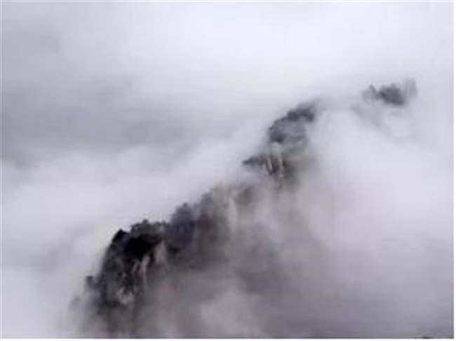 登南峰絕頂,頓感天近咫尺,星斗可摘,舉目環(huán)視,但見群山起伏,蒼蒼莽莽,為華山之最高峰,憑欄而望,白霧茫茫,不知深淺,風起云海翻騰,漸露山頂,好是奇美!