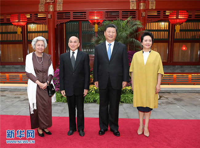 19日晚,在中秋佳節(jié)來臨之際,國家主席習(xí)近平和夫人彭麗媛在釣魚臺(tái)國賓館親切看望正在北京休養(yǎng)的柬埔寨國王西哈莫尼和太后莫尼列。