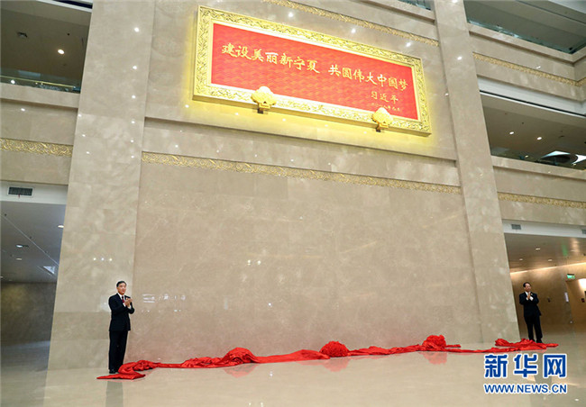 在贈送紀(jì)念品儀式上,汪洋和寧夏回族自治區(qū)黨委書記、人大常委會主任石泰峰,一同為習(xí)近平總書記題詞賀匾揭幕。