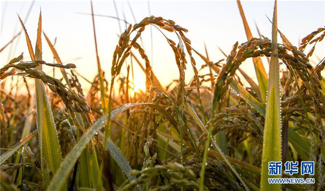 新疆察布查爾錫伯自治縣納達(dá)齊牛錄鄉(xiāng)一處待收割的水稻(9月26日攝)。眼下,地處新疆伊犁河谷的察布查爾錫伯自治縣約20萬(wàn)畝水稻迎來(lái)收割季。當(dāng)?shù)剞r(nóng)民搶抓農(nóng)時(shí),忙碌在金色田園中。記者 胡虎虎 攝