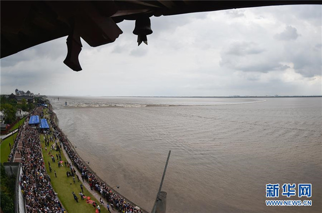 當(dāng)日是農(nóng)歷八月十八,號(hào)稱“天下第一潮”的錢塘江大潮洶涌而來(lái),眾多錢塘江沿岸居民和游客爭(zhēng)睹其壯觀景象。
