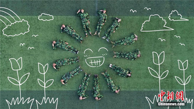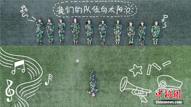 一提到軍訓(xùn),除了走方陣,站軍姿,你還能想到什么?近日,在福建師范大學(xué)協(xié)和學(xué)院2018級新生軍訓(xùn)場上,128位軍訓(xùn)新生以“閃閃紅星”“牢記八一”“嘹亮軍歌”等為題材拍攝出的一組航拍造型,并對照片進行手繪加工,記錄下了新生們不一樣的軍訓(xùn)瞬間。陳可涵 攝 劉少航 繪
