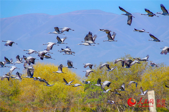 秋日的新疆昭蘇縣是候鳥的天堂。金秋時(shí)節(jié),這里天高云淡、馬肥水美,樺樹、紅柳、薔薇、沙棘等次生林呈現(xiàn)一片金黃,良好的自然生態(tài)環(huán)境吸引了大批灰鶴、大雁、野鴨、天鵝、鸛在此棲息,被游客們稱為“鳥類天堂”,吸引大批游人駐足觀看。