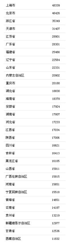 前三季度31省區(qū)市人均可支配收入。來自國家統(tǒng)計局