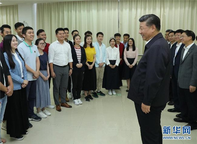 10月22日至25日,中共中央總書(shū)記、國(guó)家主席、中央軍委主席習(xí)近平在廣東考察。這是10月24日下午,習(xí)近平在廣州考察暨南大學(xué)時(shí)同部分港澳臺(tái)同胞和海外僑胞學(xué)生交流。 新華社記者鞠鵬攝