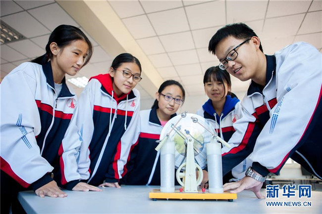 近年來,河北武邑中學(xué)開設(shè)機(jī)器人、航模、科技實(shí)驗(yàn)等趣味科普課程,激發(fā)學(xué)生的創(chuàng)新創(chuàng)造意識(shí)和科學(xué)探索精神,讓學(xué)生近距離感受科技魅力。 新華社記者 朱旭東 攝