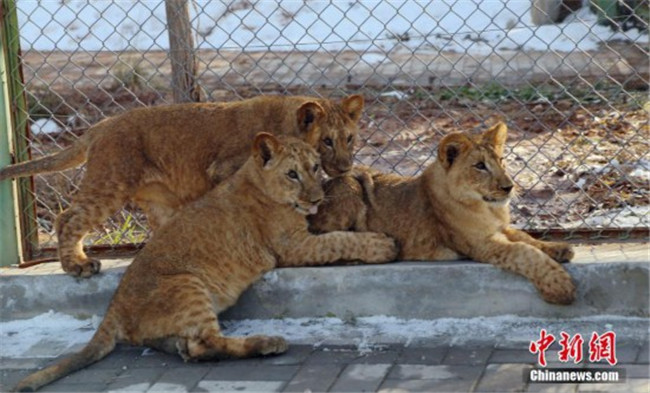 11月13日,西寧,小非洲獅曬太陽(yáng)。近日,青藏高原野生動(dòng)物園對(duì)外表示,該園繁育成活三只非洲獅。據(jù)了解,三只非洲獅寶分別出生于2018年5月9日和5月15日,均為雌性,其中一對(duì)為雙胞胎,目前三只“獅寶”已能自行捕食,體重均達(dá)到20公斤左右。此次是該物種在青藏高原誕生并育活的最好“成績(jī)”,就目前觀察情況來(lái)看,此物種已適應(yīng)青藏高原氣候。中新社記者 馬銘言 攝
