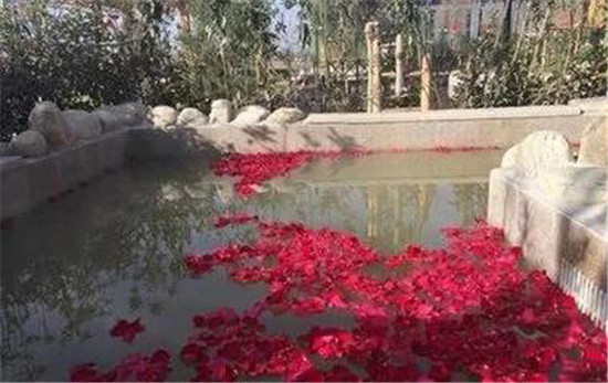 28個湯池,各具特色,湯池水量充沛,出水溫度55℃,為弱酸性水,富含氟、碘、鍶、偏硼酸等對人體健康有益的微量元素和礦物質(zhì),具有很高的理療價值。