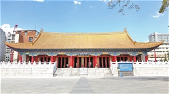 經(jīng)過一年半的施工,昆明文廟恢復(fù)性修建項(xiàng)目一期工程于去年7月完工。此次修復(fù),昆明市規(guī)劃局及相關(guān)部門以歷史文獻(xiàn)和老照片為主要修復(fù)依據(jù),并結(jié)合明清時(shí)期地方城市廟學(xué)建筑的基本規(guī)制,以及現(xiàn)有建筑遺存,對(duì)清代云南府學(xué)進(jìn)行復(fù)原研究設(shè)計(jì)。提出修復(fù)設(shè)計(jì)思路將保留云南府學(xué)中路的欞星門與泮池,恢復(fù)中軸線上的大成門、大成殿與啟圣祠,以及相關(guān)配殿,如祭器庫、樂器庫,東西廡等。并對(duì)府學(xué)的東路改造,保留桂香樓與明倫堂兩座建筑,穿插設(shè)置園林小品建筑,形成數(shù)座各有特點(diǎn)的小型古典園林,增加建筑群的文化與休閑氛圍,并將東路與西路建筑結(jié)合成為有機(jī)整體。在重新開放的文廟里,市民能發(fā)現(xiàn)從地下挖出的柱礎(chǔ)基石支撐起大成殿新建立柱;能從在地下沉睡了上百年的石碑上讀到更多關(guān)于文廟的歷史。至此,昆明祭孔、尊孔,傳承弘揚(yáng)優(yōu)秀傳統(tǒng)文化再添一處重要場所。
