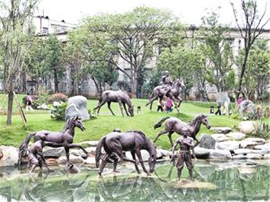 今年6月30日,《翠湖周邊歷史文化片區(qū)整治提升規(guī)劃》中的翠湖洗馬河水系恢復(fù)及帶狀公園對(duì)外開放,消失許久的“柳營洗馬”景觀重現(xiàn)翠湖邊,蜿蜒的河道從兩岸柳蔭下穿過,無論是具有明清歷史特色的兵馬奔騰的青銅雕塑,還是古樸典雅的活字印刷,抑或是獨(dú)特的噴泉造型,無不重現(xiàn)了600多年前沐英“柳營春試馬、虎帳夜談兵”的歷史文化,吸引著過往市民和游客,被稱為“昆明之眼”的翠湖,因其更具亮色。