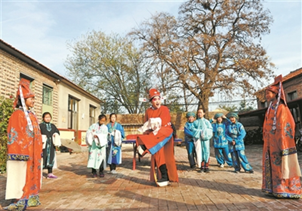 11月13日,河北省益民河北梆子劇團的演員在滄縣西官莊小學(xué)為學(xué)生講解戲曲動作。近年來,當(dāng)?shù)胤e極開展戲曲文化進校園活動,轄區(qū)內(nèi)多所中小學(xué)引入戲曲課程,以戲曲展演、戲曲名家進課堂、戲曲社團交流等形式,讓學(xué)生增進對中國傳統(tǒng)文化的了解。(記者 牟宇)