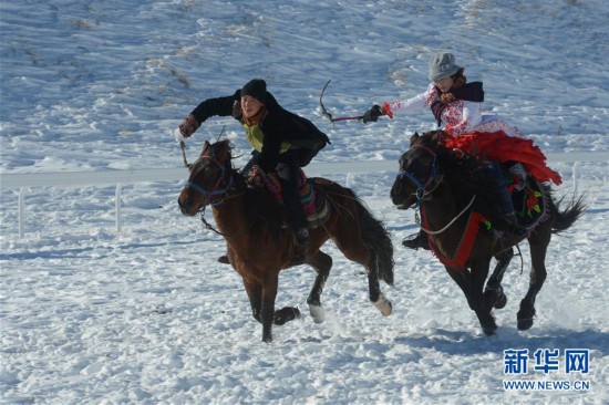 11月17日,當(dāng)?shù)鼐用裨谘┑厣线M(jìn)行賽馬比賽。當(dāng)日,新疆那拉提冰雪旅游文化節(jié)在新疆新源縣那拉提旅游風(fēng)景區(qū)開幕。此次冰雪節(jié)將舉辦滑雪運(yùn)動會、雪地越野跑、雪地足球、雪地摔跤等活動,為游客帶來冰雪之樂。 新華社發(fā)(丁磊 攝)