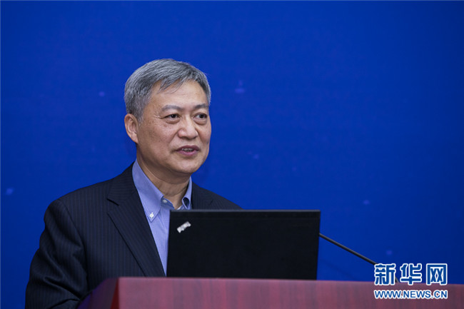 國(guó)務(wù)院發(fā)展研究中心副主任、黨組成員、研究員隆國(guó)強(qiáng)發(fā)表主題演講。新華網(wǎng)記者 李林 攝