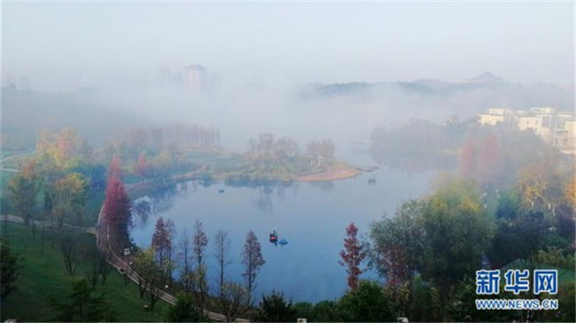 這是11月26日在貴陽市觀山湖區(qū)閱山湖公園內(nèi)拍攝的霧景。 新華社記者 劉續(xù) 攝