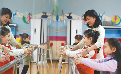 11月29日,在重慶市沙坪壩區(qū)鳳天路社區(qū)“微型少年宮”,社區(qū)志愿者在糾正孩子們的舞蹈姿勢。