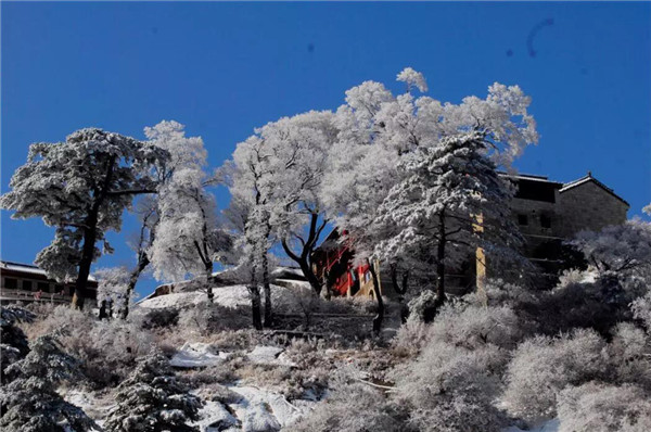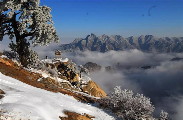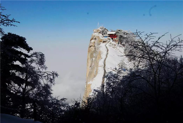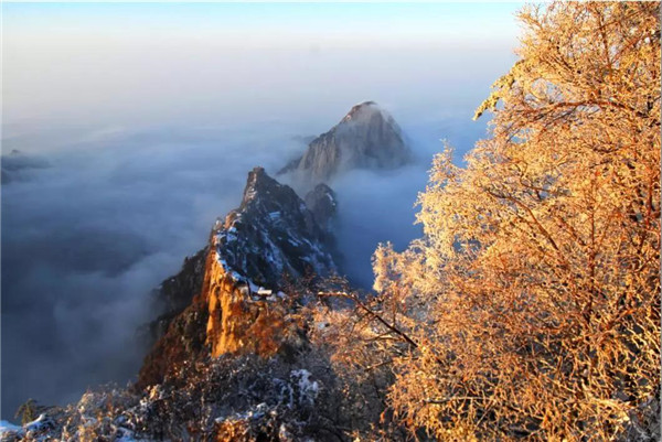 華山在11月下旬進(jìn)入冬季,12月至次年3月是華山雪季。游客可欣賞到難得一見(jiàn)的華山雪景——美麗的霧凇給樹(shù)木、巖石、屋舍都披上一層晶瑩的薄衣,尤其在大雪覆蓋后,山景變成一幅曼妙的白色圖畫,峰上的樹(shù)木和古藤被透明的冰層包裹,極富魅力。