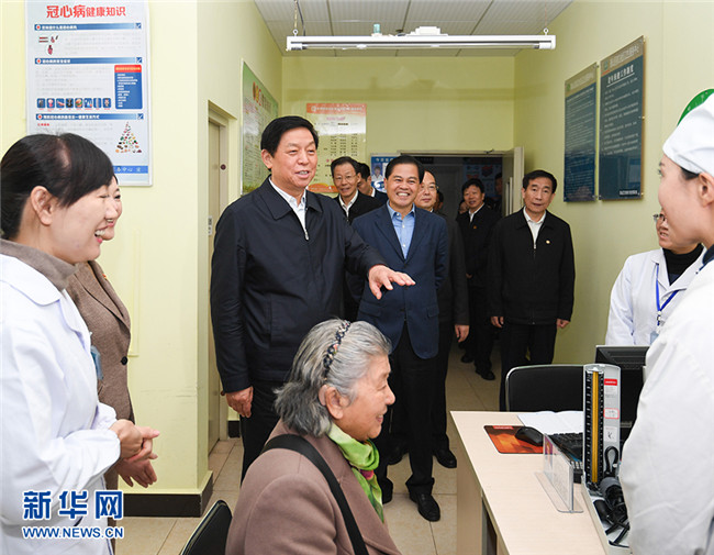 11月28日至12月1日,中共中央政治局常委、全國人大常委會委員長栗戰(zhàn)書在云南就制定基本醫(yī)療衛(wèi)生與健康促進法開展立法調研。這是11月29日,栗戰(zhàn)書在昆明市西山區(qū)前衛(wèi)社區(qū)衛(wèi)生服務中心,與醫(yī)務人員和就診患者親切交談。 新華社記者 申宏 攝