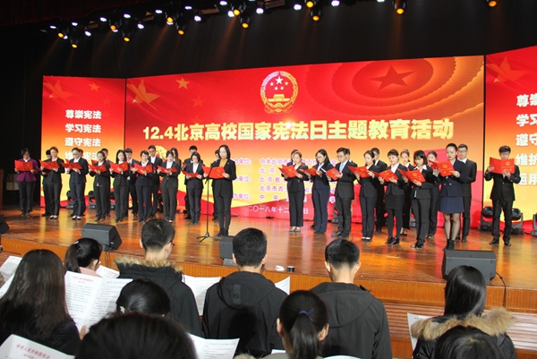 活動以共唱國歌憲法誦讀開場。團(tuán)市委副書記袁慧領(lǐng)讀憲法部分章節(jié)。北京市委教育工委副書記狄濤指出,扎實(shí)推進(jìn)以憲法教育為核心的大學(xué)生法治教育,是高教系統(tǒng)的重要任務(wù)。各高校要以高度的政治責(zé)任感和改革創(chuàng)新精神加強(qiáng)和改進(jìn)高校法律基礎(chǔ)課建設(shè),滿足大學(xué)生成長發(fā)展需求;堅持不懈開展多姿多彩、積極向上的大學(xué)生校園法治文化活動,營造濃厚的法治育人氛圍。