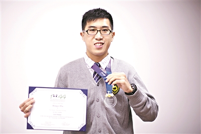 吳泓毅手持IOAA獲獎(jiǎng)證書和金牌。圖/廣州日?qǐng)?bào)全媒體記者莊小龍