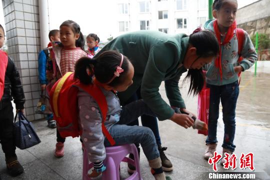 放學(xué)后,游成雪穿上襪子準備回家。陳本強 攝