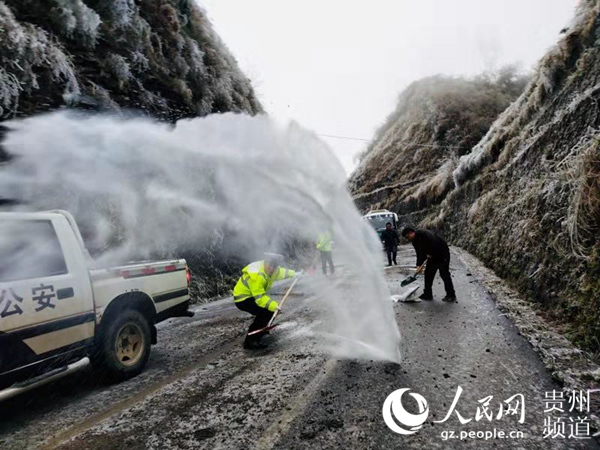 為防止凝凍帶來的各種隱患,保障司乘人員的生命財(cái)產(chǎn)安全,貴州各部門立即啟動(dòng)緊急預(yù)案,迅速行動(dòng),不僅加大對(duì)各道路的巡邏管控,還連夜組織養(yǎng)護(hù)部門對(duì)轄區(qū)凝凍路段及易凝凍路段進(jìn)行拋撒融雪劑。