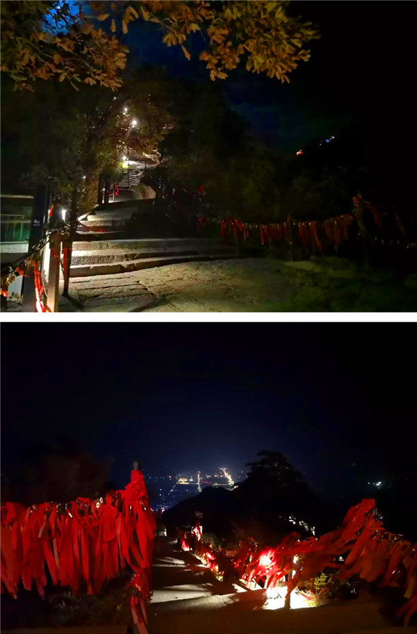 繁眼的星光,滿山的燈光,將華山映襯得一派柔和,這里的夜屏蔽了城市的喧囂與繁華,有著不屬于城市的寧靜與美麗。