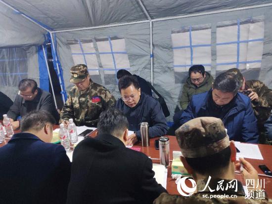 四川省應(yīng)急管理廳廳長段毅君在宜賓市興文縣“12.16”5.7級地震抗震救災(zāi)指揮部指導(dǎo)抗震救災(zāi)工作。(圖片由省應(yīng)急管理廳提供)