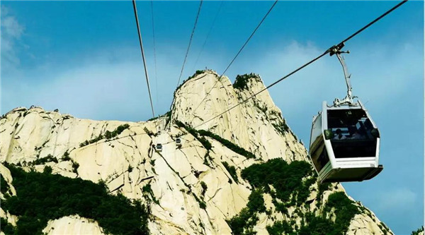 其實(shí),而今作為旅游勝地的華山,已不似古人所記所述,登山道路平整而闊,道旁鐵鏈?zhǔn)瘷谙嘧o(hù),已無危險(xiǎn)之虞,可謂“險(xiǎn)而無危”。如今,登頂華山的方式也已經(jīng)不止步行登山了,索道的建成使更多游人登頂華山的愿望成為現(xiàn)實(shí)。