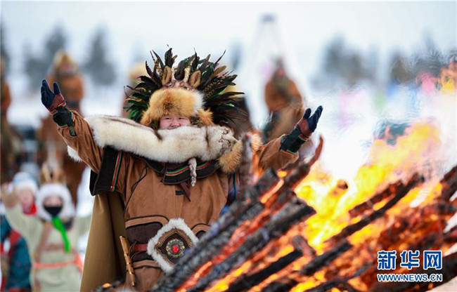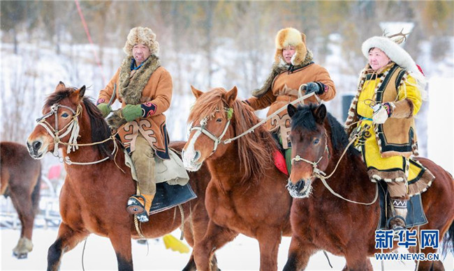 12月26日,民間藝人在“伊薩仁”開幕式上進行民俗表演。 當日,內(nèi)蒙古呼倫貝爾市第五屆鄂倫春冰雪“伊薩仁”在鄂倫春自治旗開幕。“伊薩仁”是鄂倫春語“集會”“聚會”的意思。此次“伊薩仁”期間,將舉行鄂倫春徒步林海穿越、汽車越野拉力賽、冰雪觀賞、雪上沖浪等活動,為游客帶來不一樣的冰雪體驗。 新華社發(fā)(丁根厚 攝)