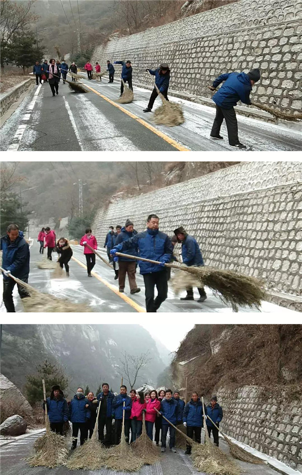 盤山公路上是進(jìn)山交通車輛的必經(jīng)之地,清掃工作任務(wù)較重,但華山人熱情飽滿,齊心協(xié)力,全力以赴,確保道路的通暢。