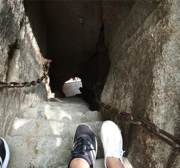 古書記載:在華山大上方有一天然石洞,形似豎井,壁如刀削,僅容一人上下。洞邊有一木梯,石壁上刻有“洞在高山”四個大字。出洞四望,豁然開朗,峰巒疊翠,林木蒼郁,奇花競秀,流泉淙淙,飛鳥時鳴,給人一種“無限風光在險峰”之感。因為大上方道路艱險,不是游客必經(jīng)之地,但古書記載的景點就在那里。