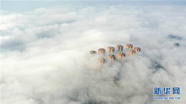 當(dāng)日,銅仁市萬山區(qū)上空出現(xiàn)平流霧景觀,建筑物、山巒在霧氣中若隱若現(xiàn)。新華社發(fā)(伍衛(wèi)東攝)
