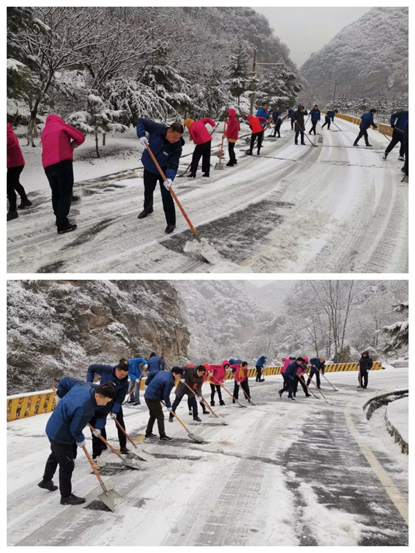 1月31日凌晨景區(qū)出現(xiàn)強降雪天氣,道路積雪嚴重影響行車安全。華旅集團第一時間多渠道發(fā)布景區(qū)推遲運營時間的信息,并向游客做好解釋工作,同時號召集團各部室、各單位迅速組織人員赴進山公路進行掃雪除冰,經(jīng)過三個小時的全力清掃,東線進山公路積雪清理完畢,景區(qū)在短時間內恢復運營,西線索道進山公路及華山峪區(qū)域不斷加大清掃力度,盡力實現(xiàn)景區(qū)全線貫通。