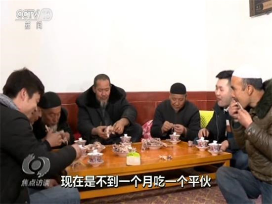 吃平伙是東鄉(xiāng)族老百姓的一個(gè)傳統(tǒng),就是大家買一只羊,平攤價(jià)格以后搭伙吃羊肉。過去,只有家里娶媳婦、蓋房子這樣的大事,才能吃個(gè)平伙?,F(xiàn)在生活好了,家里請客的時(shí)候也吃平伙,今天,馬麥志要請客,不用大家出份子錢了。他說大兒子在外面打工,自己在干清潔工,媳婦在車間里面炸油馃馃,收入應(yīng)該有3萬多元。