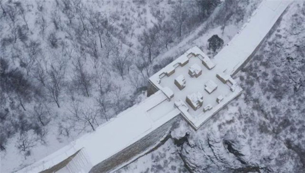 2月12日無人機拍攝的北京延慶區(qū)玉渡山雪景。新華社發(fā)(衛(wèi)萊 攝)