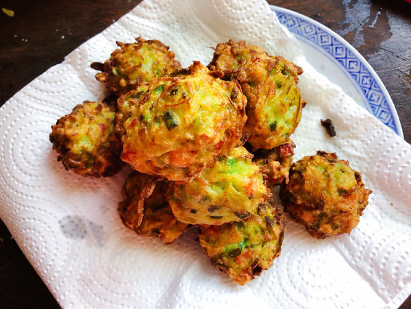 6.油鍋加熱后,放入做好的蘿卜丸子