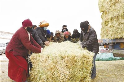 2月25日,玉樹藏族自治州玉樹市上拉秀鄉(xiāng)日瑪村,寒風(fēng)瑟瑟,村民內(nèi)心卻是無比溫暖,黨委政府下?lián)艿娘暡萘弦慌慌乩\(yùn)到了日瑪村,村民自發(fā)組織卸載搬運(yùn)飼草料,分到飼草料的牧民,用自家面包車?yán)\(yùn)飼料,臉上掛滿了笑容。