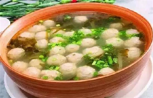這個生汆丸子,地方人都愛吃北十字那的,自我感覺稍微咸點,倒是比較鐘情于東興路那家丸子,減淡適中,鍋盔饃也好吃。