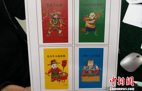 在眾多的漫畫(huà)中,有一組設(shè)計(jì)水滸英雄吃面的造型吸引眼球。漫畫(huà)中的英雄人物花樣“秀”吃面,配著“雪夜上面館”“吃面倒拔垂楊柳”“三碗牛大不過(guò)崗”等文字。