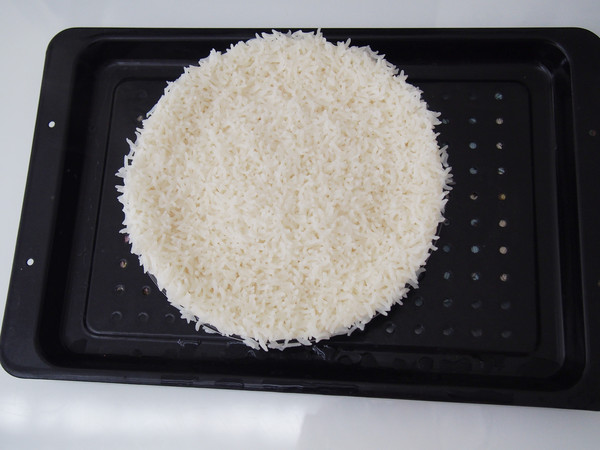 7.不同的大米用量和不同類型的大米,要適當調整時間哈。蒸好的米飯晾涼打散備用