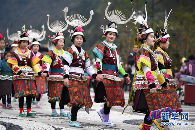 3月16日,在丹寨縣南皋鄉(xiāng)清江村,苗族姑娘在前往參加翻鼓節(jié)活動途中。 當(dāng)日,貴州省黔東南苗族侗族自治州丹寨縣南皋鄉(xiāng)清江村清江村舉行翻鼓節(jié)。翻鼓節(jié)是當(dāng)?shù)孛缱宕迕裼哟焊絹淼拿袼坠?jié)日,至今已有近600年歷史,每年農(nóng)歷二月舉行。 新華社記者 楊文斌 攝