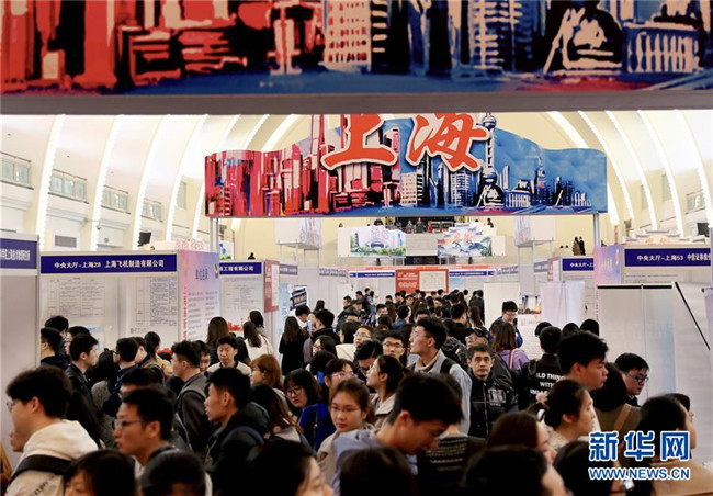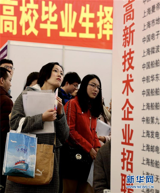 3月24日,求職者在招聘會上了解崗位信息。當(dāng)日,由上海、江蘇、浙江、安徽聯(lián)合舉辦的“長三角地區(qū)春季人才交流洽談會暨2019屆高校畢業(yè)生擇業(yè)招聘會”在上海展覽中心舉行。 新華社記者 劉穎 攝