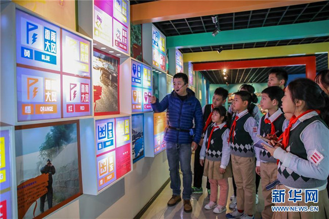 當(dāng)日,安徽省合肥市合作化南路社區(qū)組織第六十七中學(xué)小學(xué)部學(xué)生來到市氣象科普館,學(xué)習(xí)氣象科普知識(shí),迎接3月23日世界氣象日的到來。 新華社記者 曹力 攝