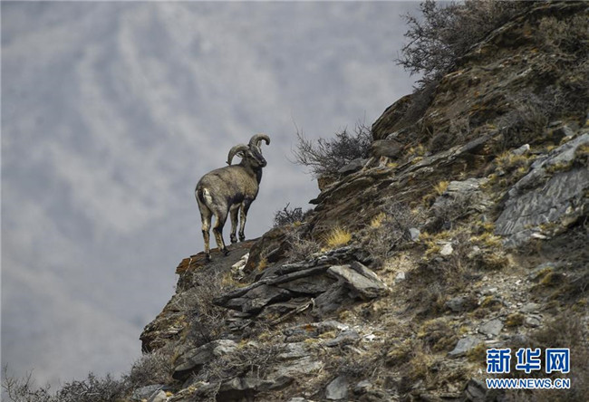 3月27日,在寧夏賀蘭山國家級自然保護區(qū),一只巖羊站立在峭壁邊。