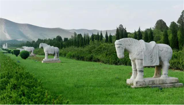 橋陵的石馬也有著自己的特色,膘肥體壯、披戴華麗,與昭陵六駿形成鮮明對比,昭陵六駿四蹄生風(fēng)、英姿颯爽,為大唐的江山立下了汗馬功勞。遺憾的是這些馬大部分都沒有馬嘴了,相傳石馬成精,偷吃當(dāng)?shù)乩习傩盏拿缀兔妫蝗藗儼疡R嘴給敲掉了。但奇怪的是東面有幾匹馬的馬嘴保存特好,仔細(xì)去看,會發(fā)現(xiàn)原來馬嘴上面套著馬籠子。石馬還有一個神氣的特點,用手輕拍,會發(fā)出特別清脆的金屬聲音,傳說,會給人們帶來好的運氣,寄托著人們對美好事物的向往。