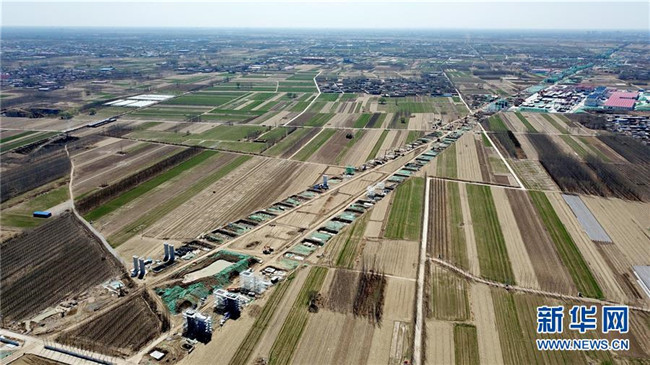 這是京雄城際鐵路施工現(xiàn)場(3月21日無人機(jī)拍攝)。新華社記者 牟宇 攝
